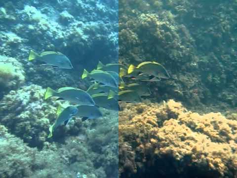 La otra limitación no tan evidente y que descubrí montando el vídeo del otro día, es que la cámara solo aplica el modo submarino a fotografías fijas pero no a vídeos. Con lo cual en el momento de volcar la sesión de fotos del buceo te puedes encontrar fotografías y videos realizados en el mismo instante pero con tonos de color completamente dispares.