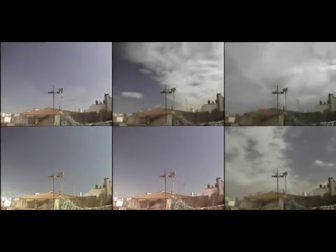 De izquierda a derecha y arriba a abajo los vídeos corresponden al 2, 3, 4, 5, 6 y 7 de Octubre. Las secuencias se crean a partir de fotogramas tomados cada 15 segundos desde 1 hora antes de amanecer a una hora despues de atardecer, por lo que , como en estas fechas los dias cada vez son más cortos, los 6 vídeos empiezan casi iguales (aunque a diferentes horas) y terminan un poco antes los más recientes.